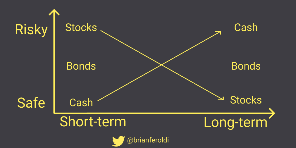 This chart illustrates a fundamental investment principle about how risk and safety can flip over different time horizons.